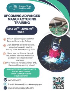 Registration is now open for SUNY Broome Advance Manufacturing Training! Classes start Wednesday, May 27th!